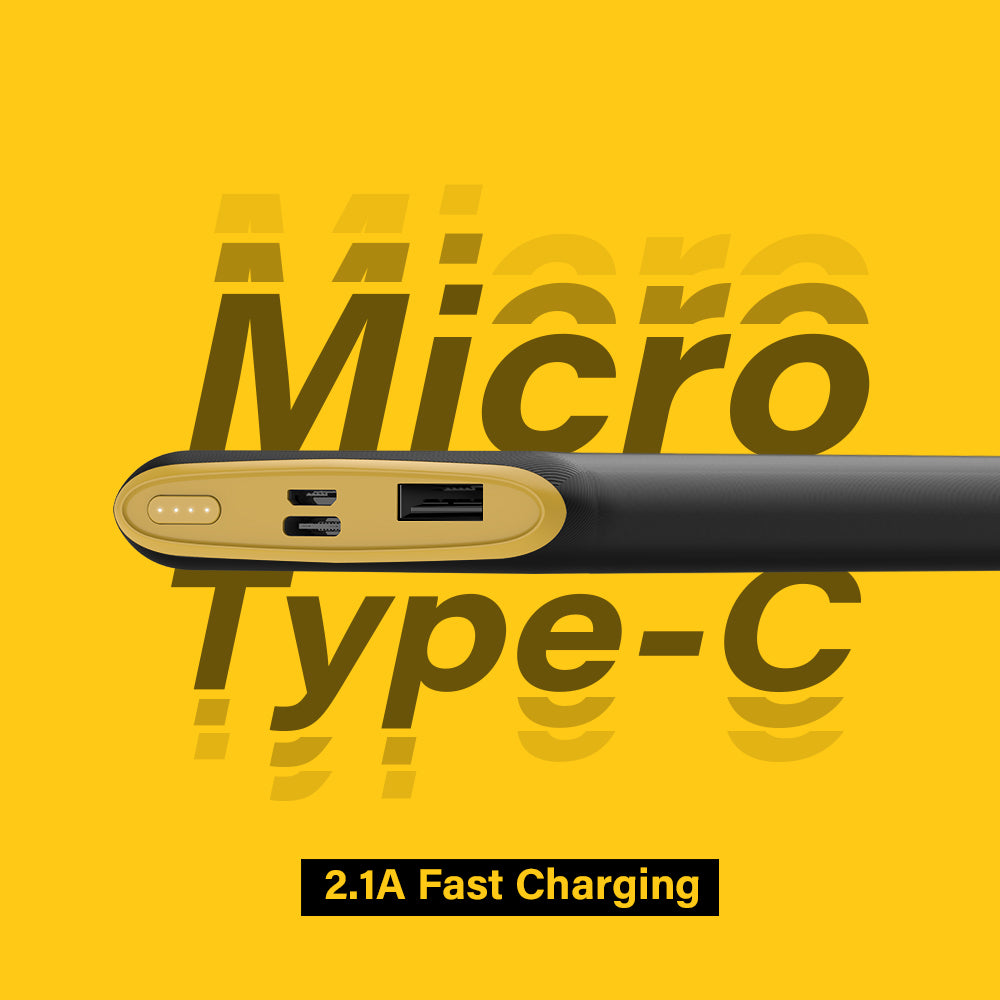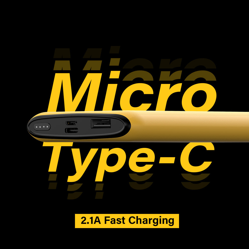 Dual Input Options: Micro USB and Type-C for convenient recharging.
