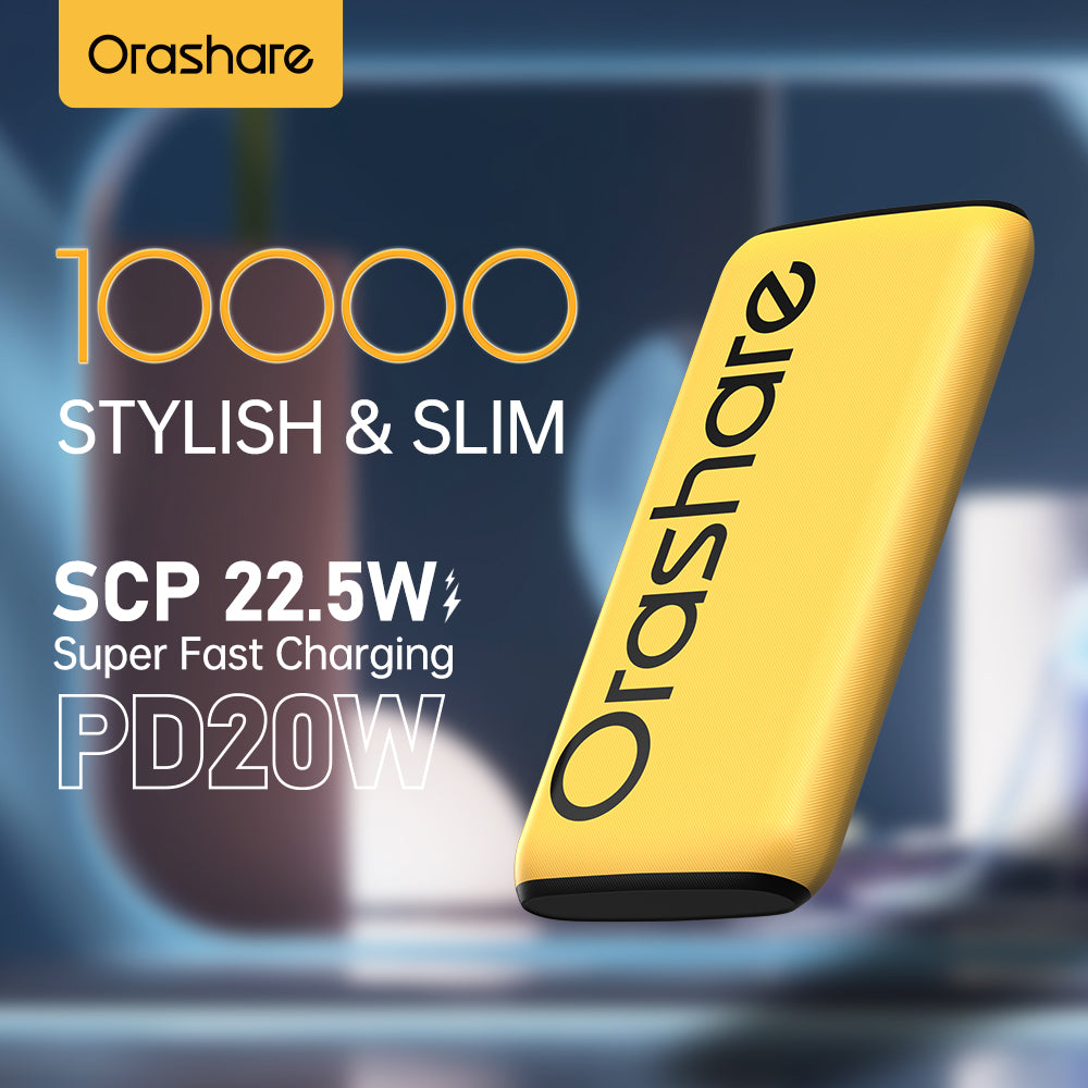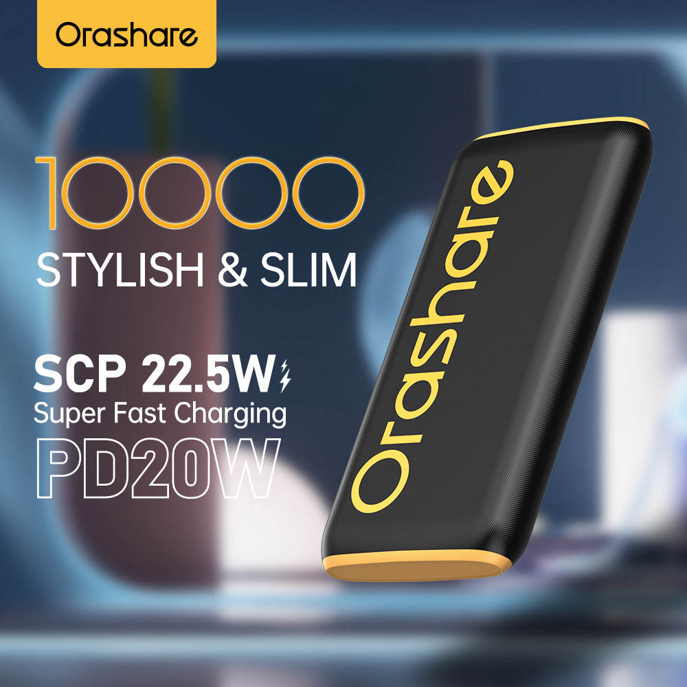 The Orashare O10pro 10000mAh Power Bank offers SCP 22.5W and PD 20W super fast charging in a sleek, portable design. Perfect for on-the-go power, this slim power bank can easily fit into your travel essentials.